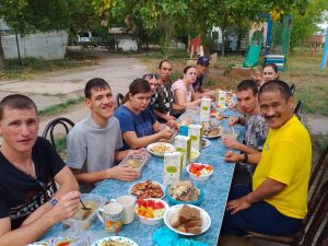 Всем известно, что выезды на природу полезны для физического здоровья, психического состояния и когнитивных способностей. Пребывание в природных условиях помогает отдохнуть от городской суеты, насытить организм кислородом и почувствовать внутреннюю гармонию. Молодые инвалиды, проживающие в отделении социального обслуживания центра «Русь», выехали в оздоровительное отделение с. Калинино. В теплые дни ранней осени специалисты организовали на природе разнообразные активности: подвижные игры, физминутки. Ребята играли в мини-футбол, бадминтон, волейбол. Незабываемым событием стала рыбалка. Получив все необходимое, рыбаки с большим удовольствием провели время у воды. Улов отправили на уху, которую сварили тут же. Вкусное блюдо из свежей рыбы, приготовленное под руководством повара из столовой загородного отделения центра «Русь», удалось на славу. В процессе приготовления ребята запоминали, как правильно чистить рыбу и овощи, в какой последовательности их готовить. Затем убрали за собой посуду и места своего отдыха.