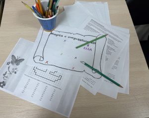 Усваивать знания по пространственной ориентации надо в процессе игры — основного вида деятельности детей. В практической части родители вместе с детьми выполняли упражнения «Далеко-близко», «Дотронься до..», искали клад по маршрутным листам, выполняли графический диктант.