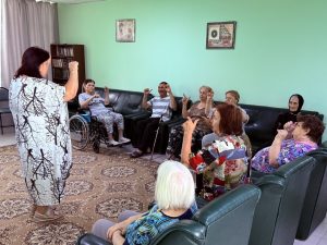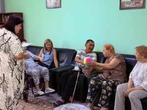 Когнитивные тренировки – это игры с разным уровнем сложности, которые являются работой над сосредоточением, логикой, памятью. Специалист по комплексной реабилитации центра «Русь» Ольга Трофимова отметила, что тренировки для головного мозга пожилых людей, являются поддержкой в возможности хорошей памяти, внимания, концентрации, а также они могут помочь в нахождении особых выходов из проблем, нестандартных ситуаций и сложных вопросов. Она предложила выполнить практические упражнения и потренировать свой мозг. Задания «Повтори имя», «Спина к спине», «загадки с подвохом», «Найди цифру» очень понравились участникам тренинга, они с удовольствием их выполняли. В процессе работы улучшилось настроение, участники обсуждали свои действия, поддерживали друг друга.